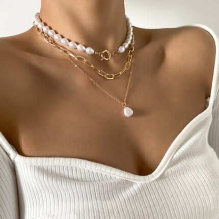 Geometric Beads Chain Twin Necklace Niche Pearl Hollowed Out Love Necklace