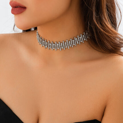 Luxury Big Rhinestone Short Choker Necklace for Women Exaggerated Clavicle Chain