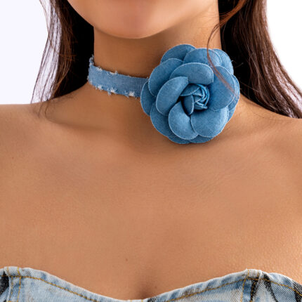 Exaggerated Romantic Blue Big Rose Flower Clavicle Chain Necklace Women Elegant Short