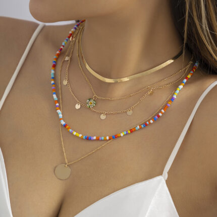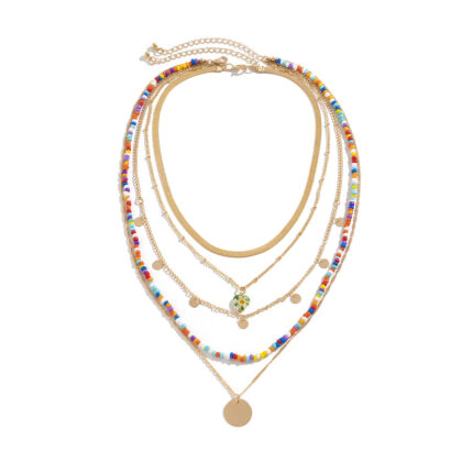 Bohemian Handmade Beaded All-Match Necklace Simple Daisy Heart Snake Bones Chain Layered Necklace