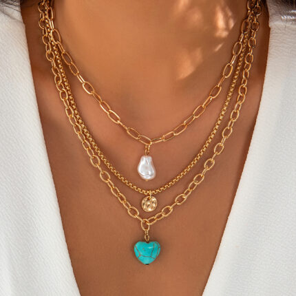3Pcs Vintage Irregular Pearl Pendant Choker Necklace for Women Goth Stone Pendant Box Chain Aesthetic Y2K Wed Jewelry
