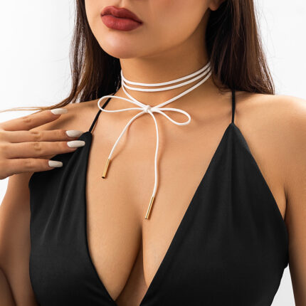 Fleece DIY Strap Necklace Party Personalized Collar Handmade Fashion Long Bow Necklace