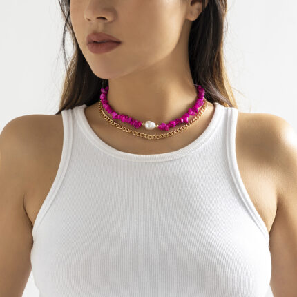 Fashion 2 Piece Irregular Turquoise NK Chain Necklace Set Design Rose Red Pearl Pendant Necklace Adjustable Choker Girls