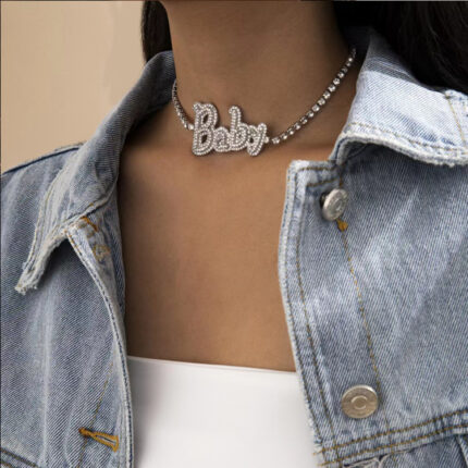 Fashion Custom Baby Angel Letter Pendant Tennis Necklace Shiny Crystal Diamond Tennis Pendant Necklace