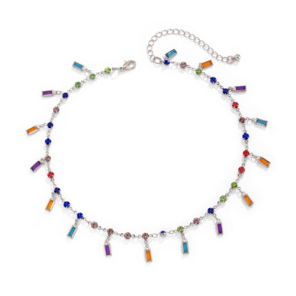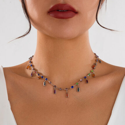 Colorful Crystals Diamonds Pendant Necklace Handmade Beaded Collar Bone Chain