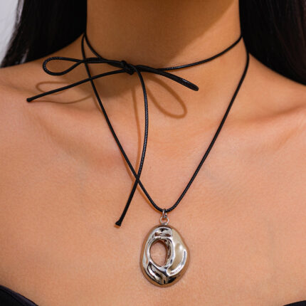 New Hip Hop Irregular Hollow Out Pendant Necklace Trendy Geometric Oval Teardrop Lanyard Necklace