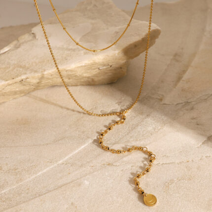 Stainless Steel Round Bead Multi-Layer Necklace Ins Tassel Necklace Double Layer Steel Necklace