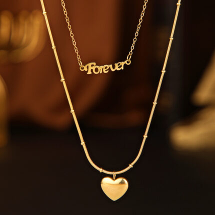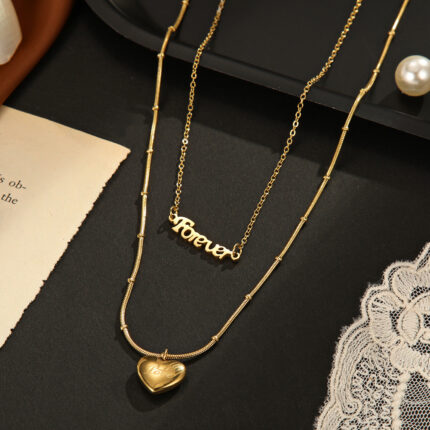 18K Gold Plated Snake Bones Chain Double Layer Letter Heart Necklace Customizable Women Forever Necklace