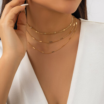 Hot Selling Product Necklace Simple Multi-layer Metal Chain Necklace Jewelry Set for Woman Gold