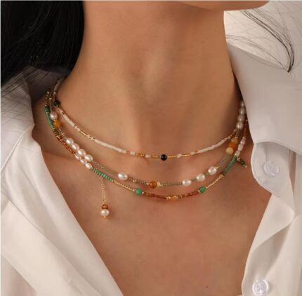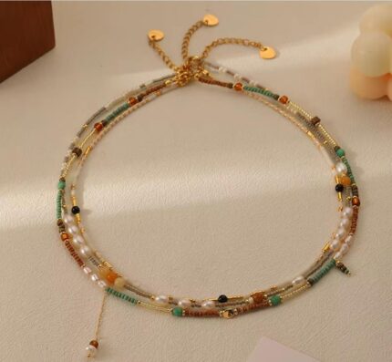 New Stacking Natural Crystal Gemstone Beaded Necklace Fashion Handmade Freshwater Pearl Necklace Jewelry