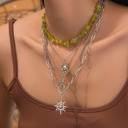 New Fashion Vacation Style Stacked Gravel Necklace Star Moon Alloy Pendant Choker Chain Moon Star Charms for Necklace