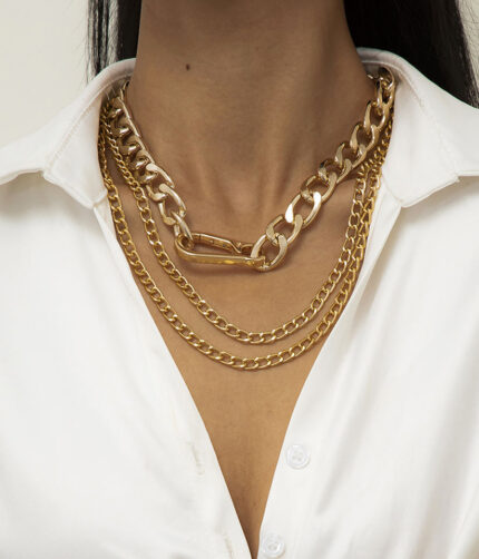 Multi Layer Geometric Tassel Hip Hop Cuba Necklace Female Simple Retro Metal Keychain Necklace