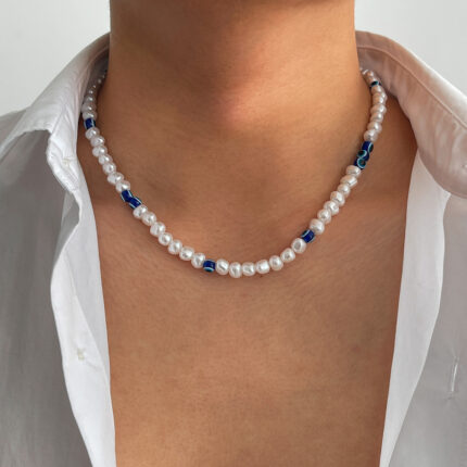 Fashion Retro Hundred with Pearl Necklace New Male Hundred with Personality Simple Accessories