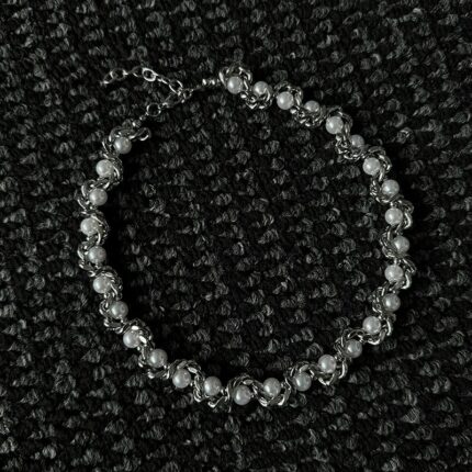 Mens Pearl Winding Choker Chain Male Senior Sense Steel Pearl Necklace Bracelet Accessories