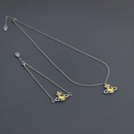 New Light Luxury Inlaid Zirconia Necklace Set Senior Sense of Simplicity Saturn Choker and Bracelet