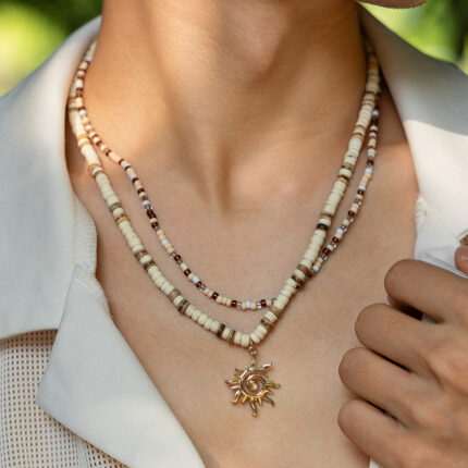 New Fashion Coconut Shell Rice Beads Necklace Sunflower Pendant Men and Women Choker Necklace