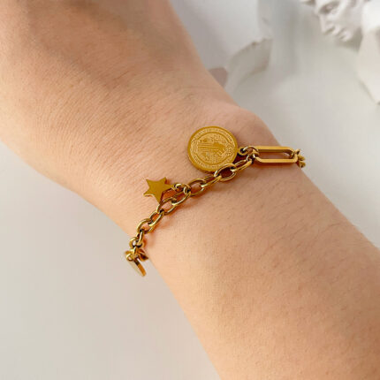 Fairy Dainty Star Chain Bracelet 18K Gold Plated Women Stainless Steel Jewelry Pulseras Star Coin Charm Bracelets