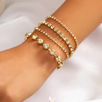 Luxury Shiny Rhinestone Tennis Chain Bracelets Set for Women Adjustable Clear Crystal Link Bangles Couple Hand Jewelry