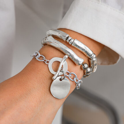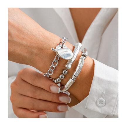Fashion Ins Style Metal Sense Round Piece Bracelet Irregular CCB Silver Bracelet Round Column Bracelet Set