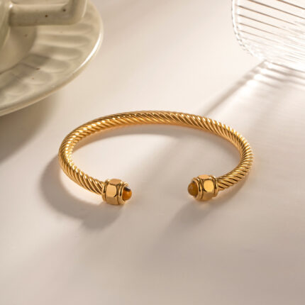 Waterproof 18k Gold Plated Stainless Steel Jewelry Party Gift Twist Pave Opening Nature Stone Bracelet
