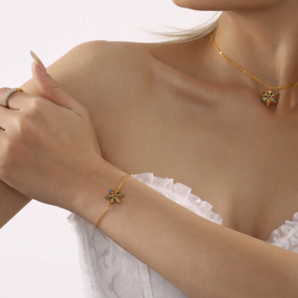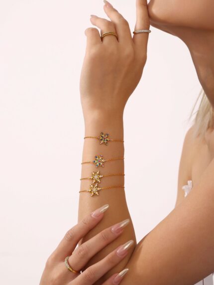 Fashion Handmade 18K Gold Titanium Steel Inlaid with Super Sparkling Zirconia Snowflake Bracelet Jewelry
