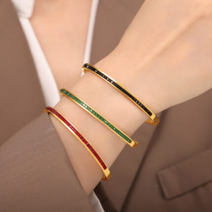 Fashion Personalized Light Luxury Style Titanium Steel Plated 18K Gold Inlaid Color Diamonds Design Bracelet Jewelry
