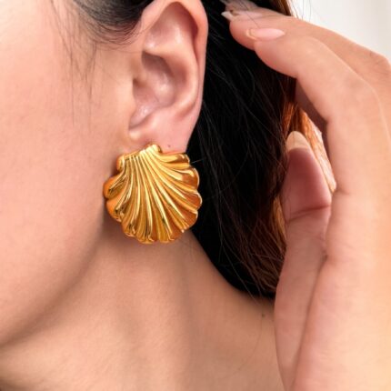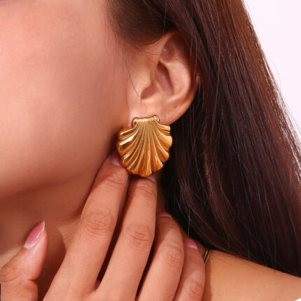 New Retro 18K Gold-plated Titanium Steel Medieval Court Style Shell Earrings Women’s Jewelry