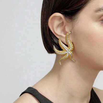 Bohemian Exaggerated Design Large Metal Rhinestone Starfish Earrings Women’s Fashion Summer Earrings Jewelry