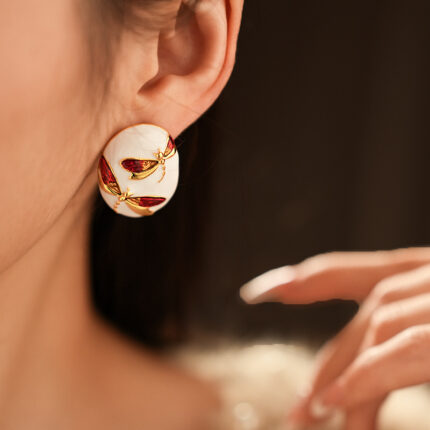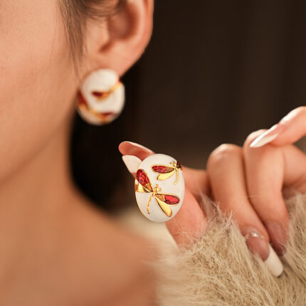 Antique Vintage Silver Pin Earrings Dragonfly Round Light Luxury Senior Sense Temperament Earrings