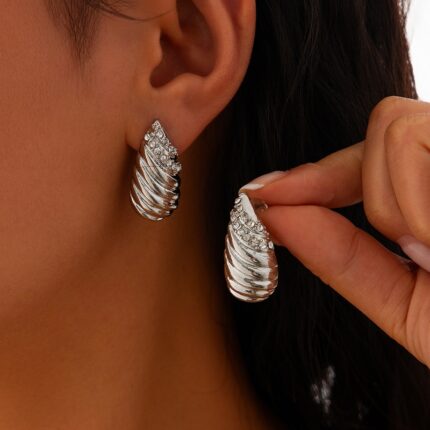 Fashion Hot Sale Diamond Fine Stud Earrings Rhinestone Croissant Bread Earrings Spiral Stud Earrings for Women