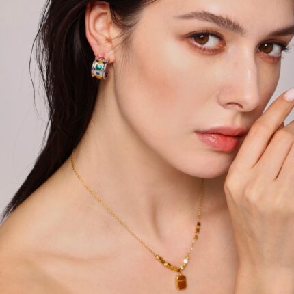Emerald Gemstone Earrings Studs Retro Emerald Green Earings Waterpoof Hypoallergenic Earings