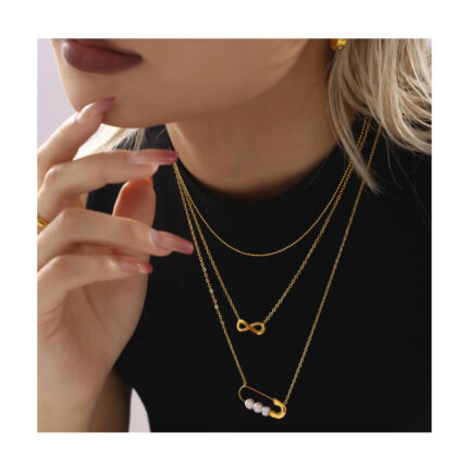 New Stainless Steel Natural Stone Freshwater Pearl Pin 8 Words Rice Beads Three-layer Necklace Does Not Fade Necklace Jewelry