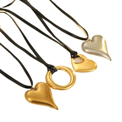 Fashion High Feeling Stainless Steel Hollow Heart Skeleton Pendant 18K Gold Chain Pendant Necklaces