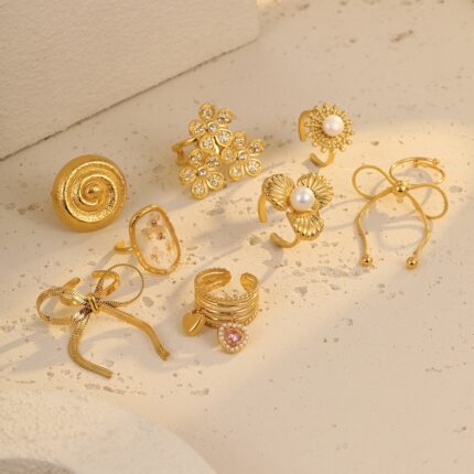Vintage Stainless Steel Ring Exaggerated Hundred Irregular Geometric 18K Gold Plated Titanium Steel Finger Ring Hand Jewelry