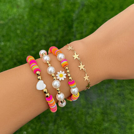 New 4-piece Korean Fashion Sunflower Pendant Bracelet Women’s Fashion Colorful Star Bracelet Couple Jewelry