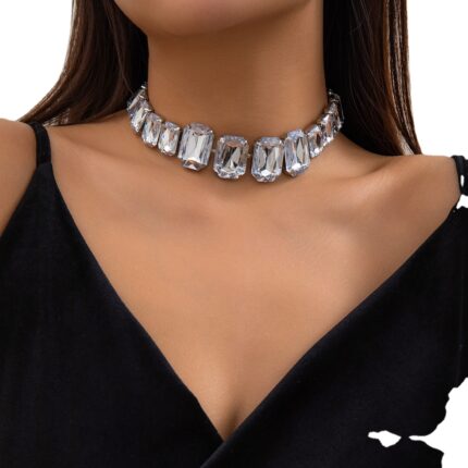 Exaggerated Large Ice Rhinestone Collarbone Chain Women Necklace Retro Punk Wedding Bride Jewelry Accessories