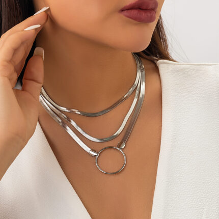 New Fashion Trendy Personality Multi-Layer Aluminum Zipper Necklace Geometric Metal Buckle Clavicle Necklace