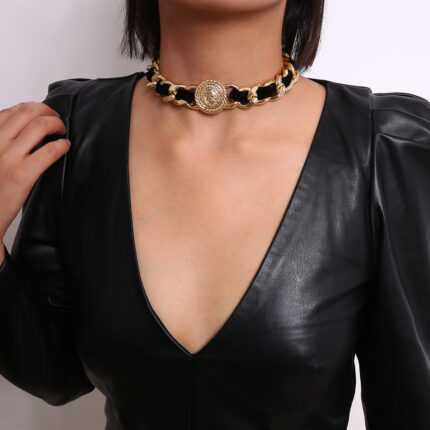 2023 New Fashion Jewelry Black Necklace Female Rivets Punk Collar Leather Choker Halloween Necklace