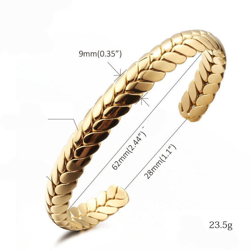 18K Gold Plated Stainless Steel Cuff Bracelet Gift for Women Wheat Style Couples Bracelets Weave Braided Bangle
