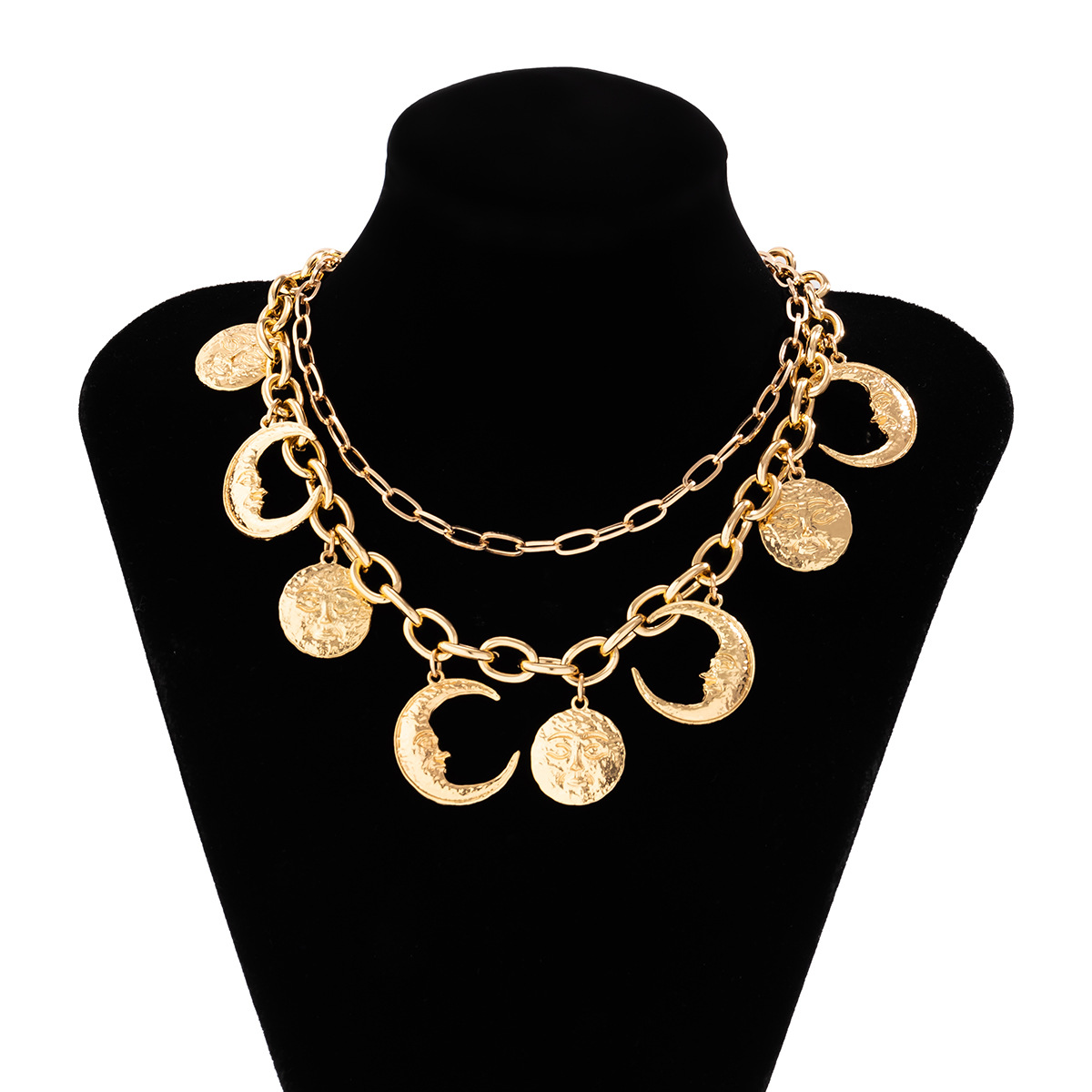 Home Necklace Fashionable Metal Star Moon Tassel Necklace Double Layer Round Geometric Portrait Pendant Necklace for Women Hip
