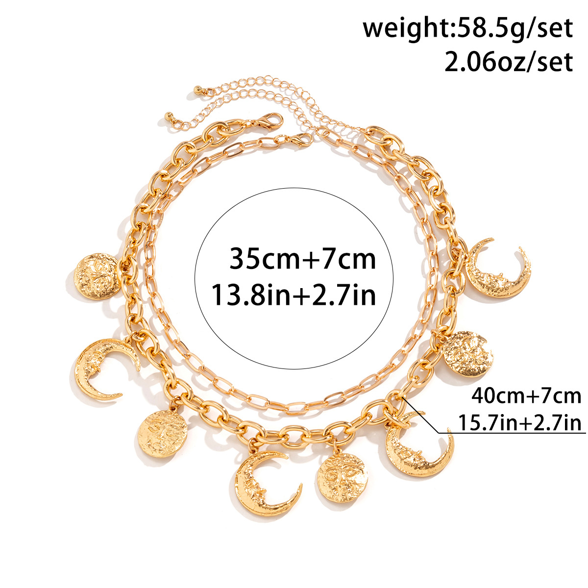 Be the first to review “Fashionable Metal Star Moon Tassel Necklace Double Layer Round Geometric Portrait Pendant Necklace for Women Hip” Cancel reply