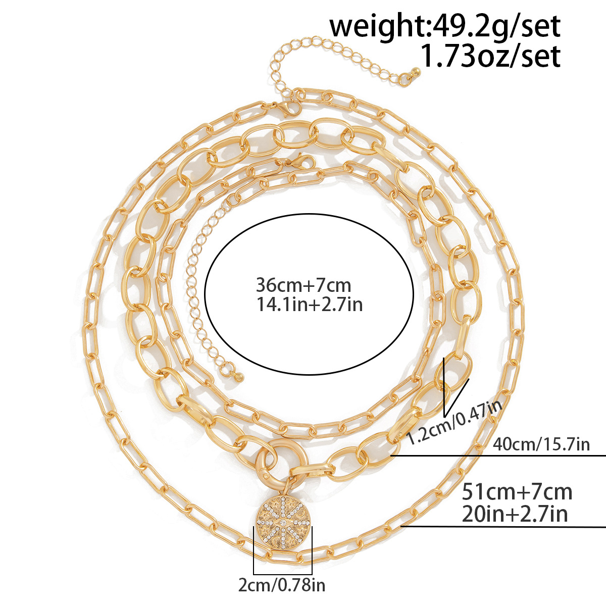 Be the first to review “3 Piece Hip Hop Style Alloy Cuban Necklace Round Piece Spring Clasp Choke Chain Set” Cancel reply