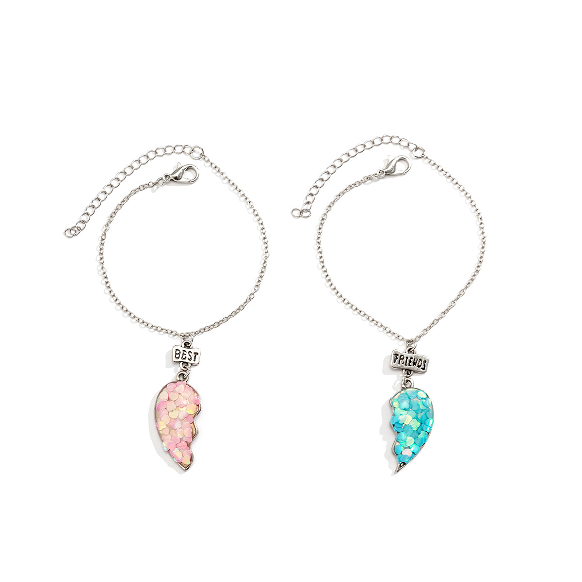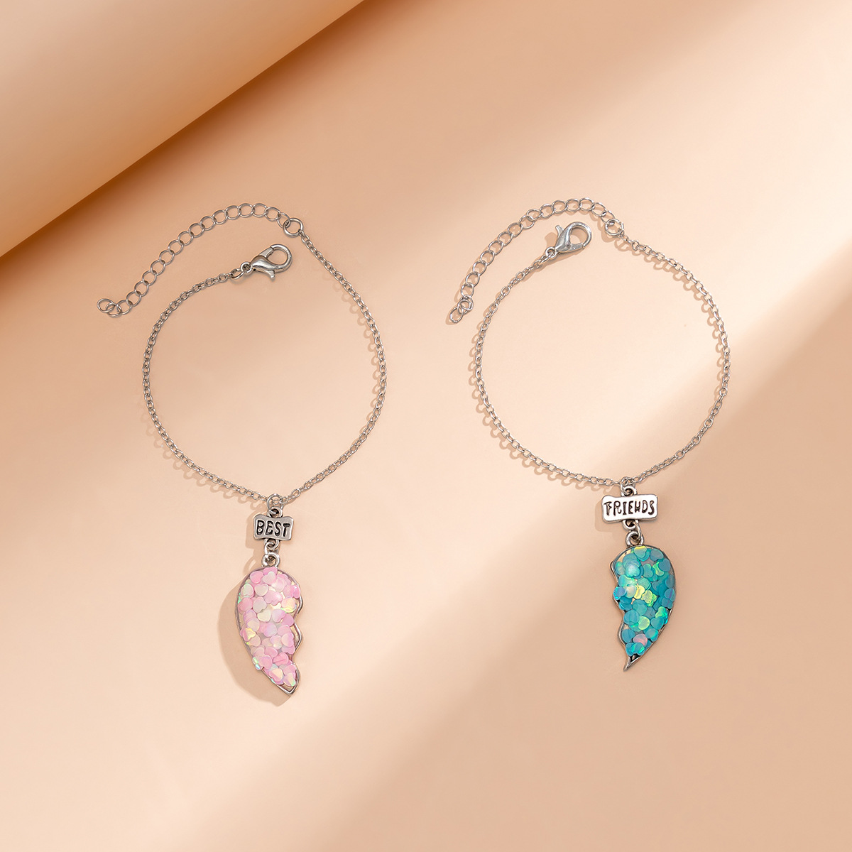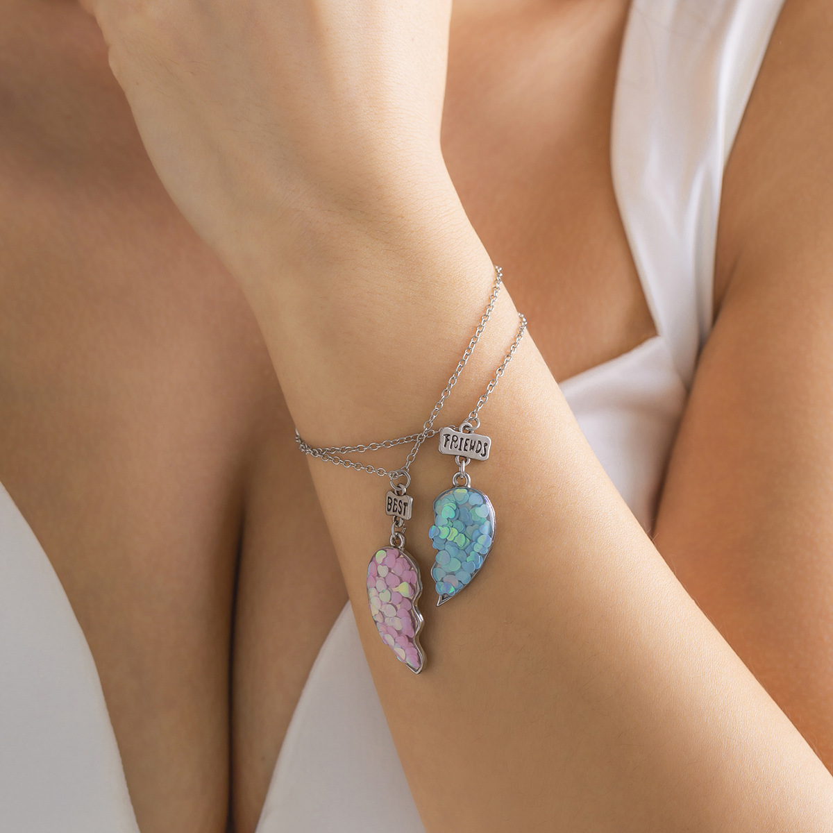 Home Bracelet BFF Necklaces for 2 Split Heart Pendant Best Friends Forever Friendship Bracelet Girl’s Gift