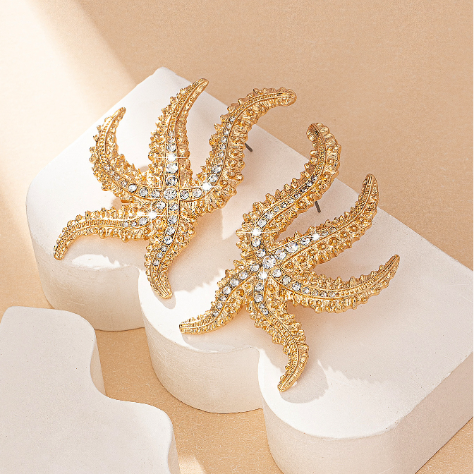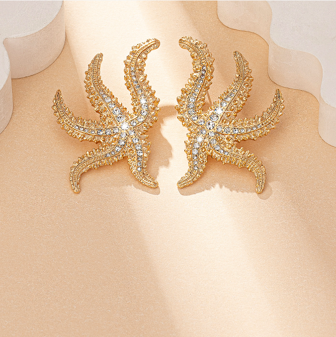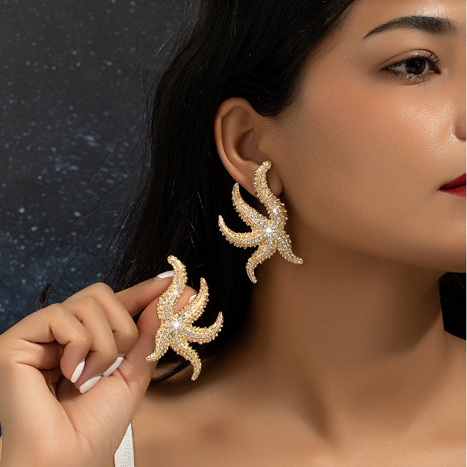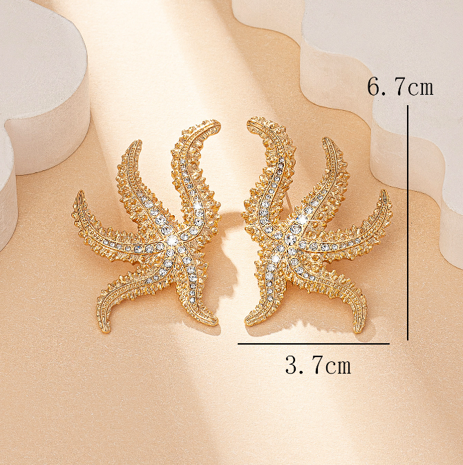 Home Earrings Bohemian Exaggerated Design Large Metal Rhinestone Starfish Earrings Women’s Fashion Summer Earrings Jewelry