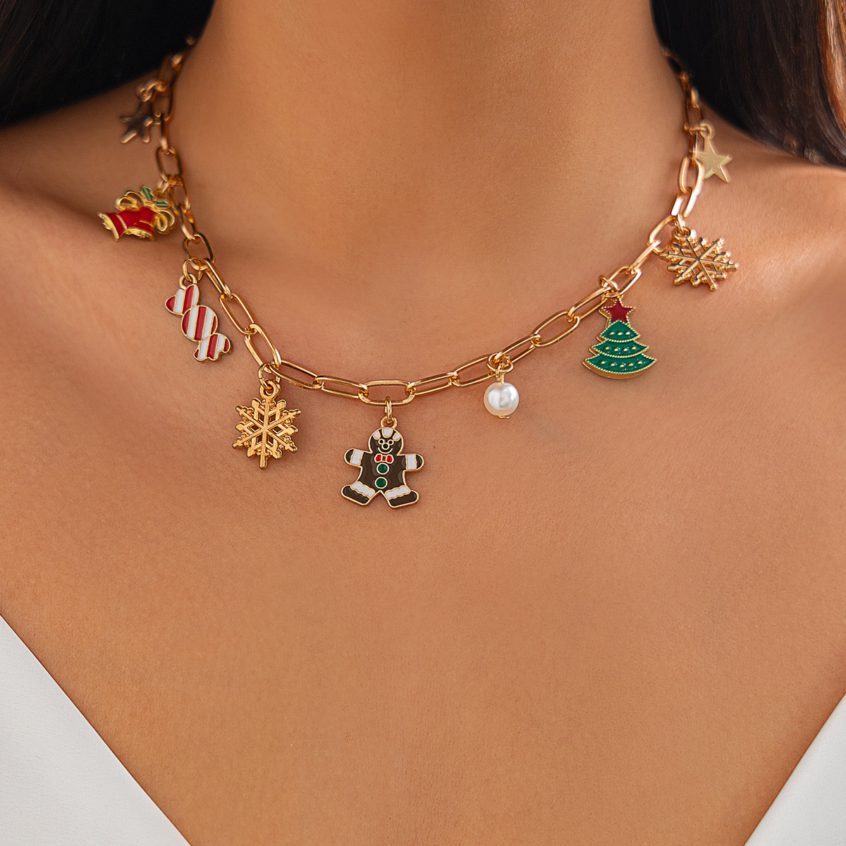 Home Jewelry Set Christmas Fashion Bells Christmas Tree Necklace Bracelet Earings Light Luxury Style Metallic Chain Set