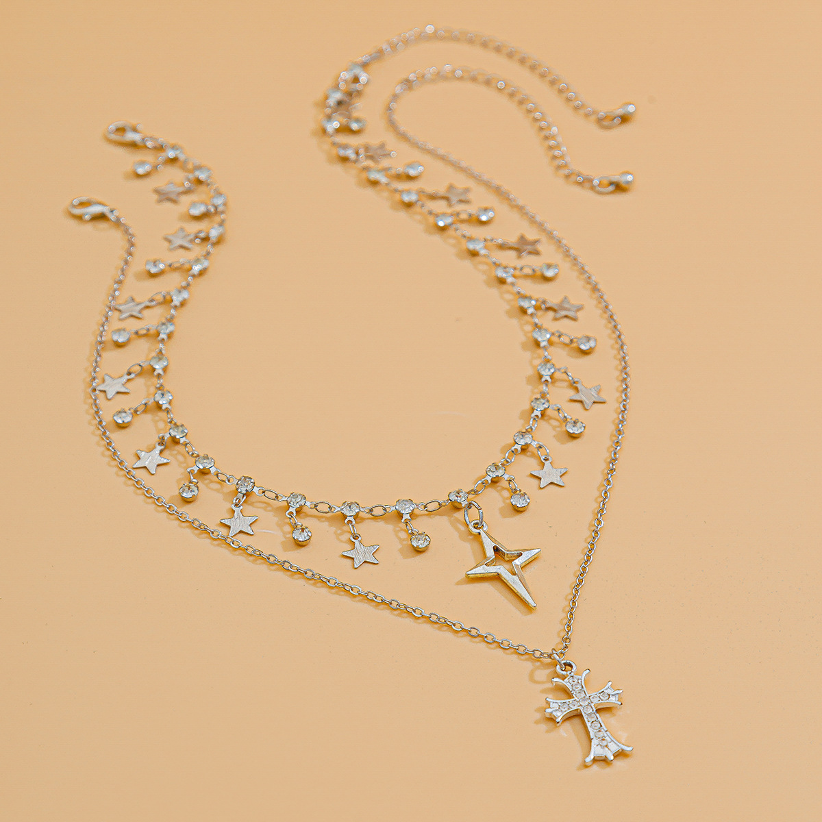 Home Necklace Punk Style Cross Rhinestone Star Leaf Pendant Necklace Personalized Multi-Layered Thin Chain Chain Bone Chain Female