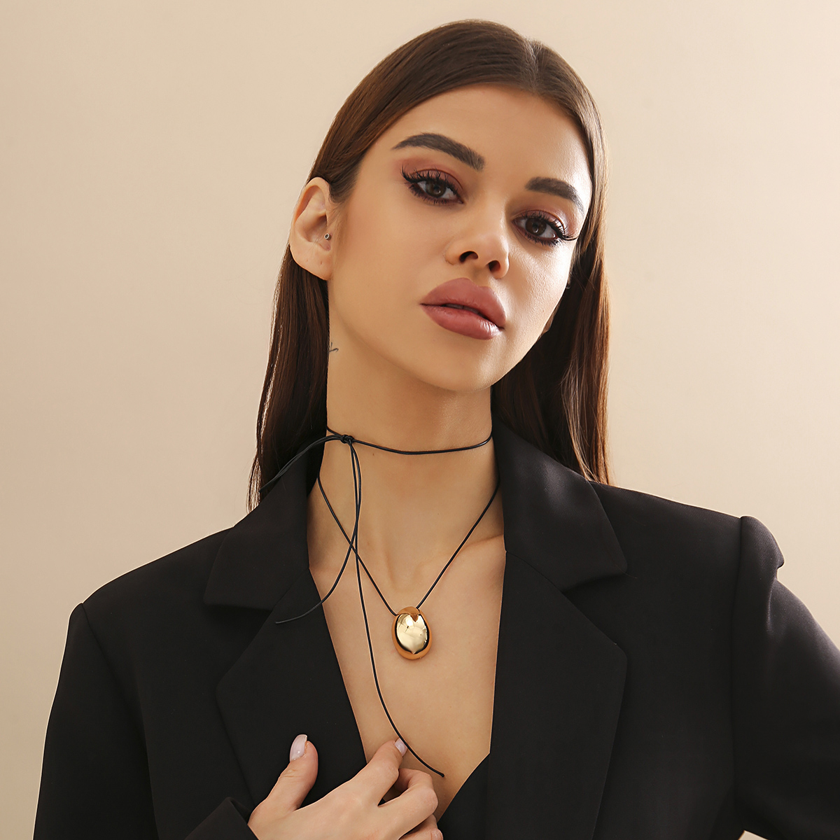 Home Necklace Elegant Gothic Big Bean Pendant Choker Necklace for Women with Adjustable Rope Chain Knotted Bowknot Weddings Bridal Collares
