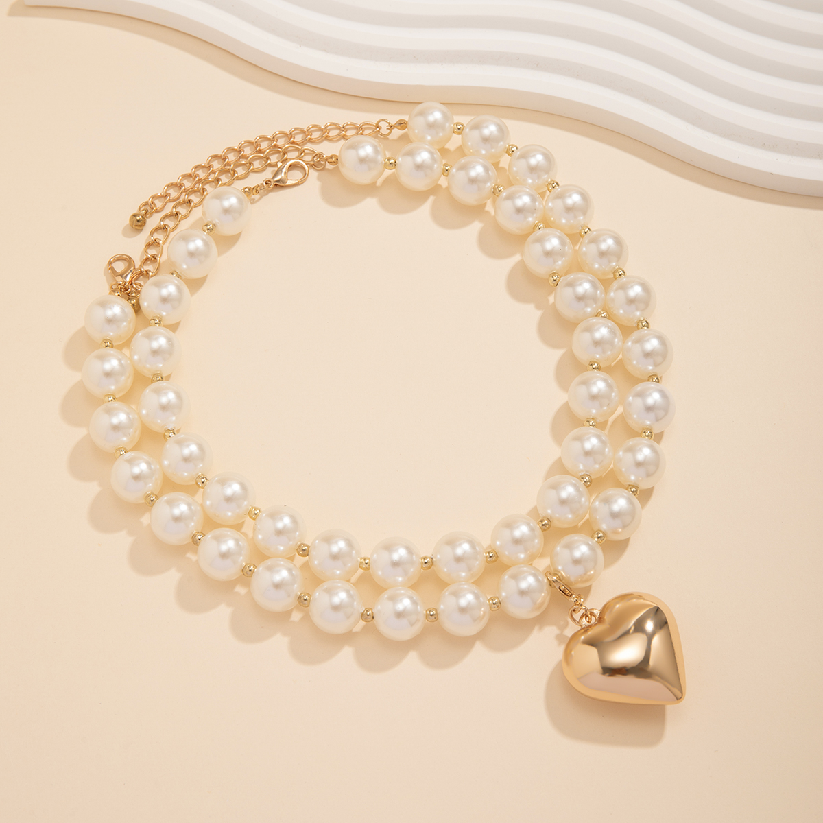 Home Necklace Elegant Pearl Beads Chain Necklace for Women Vintage Love Heart Pendant Choker Necklace Jewelry