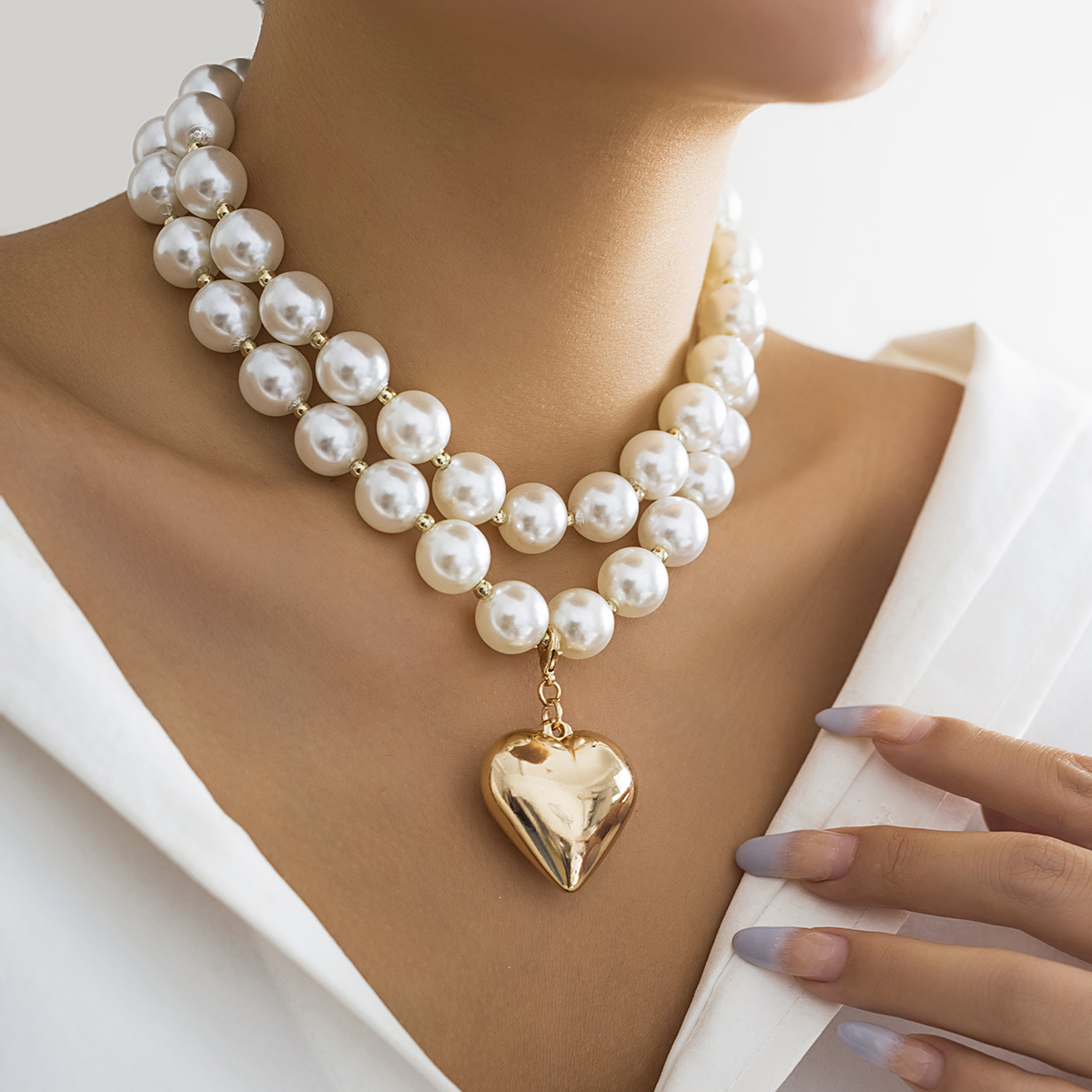 Elegant Pearl Beads Chain Necklace for Women Vintage Love Heart Pendant Choker Necklace Jewelry