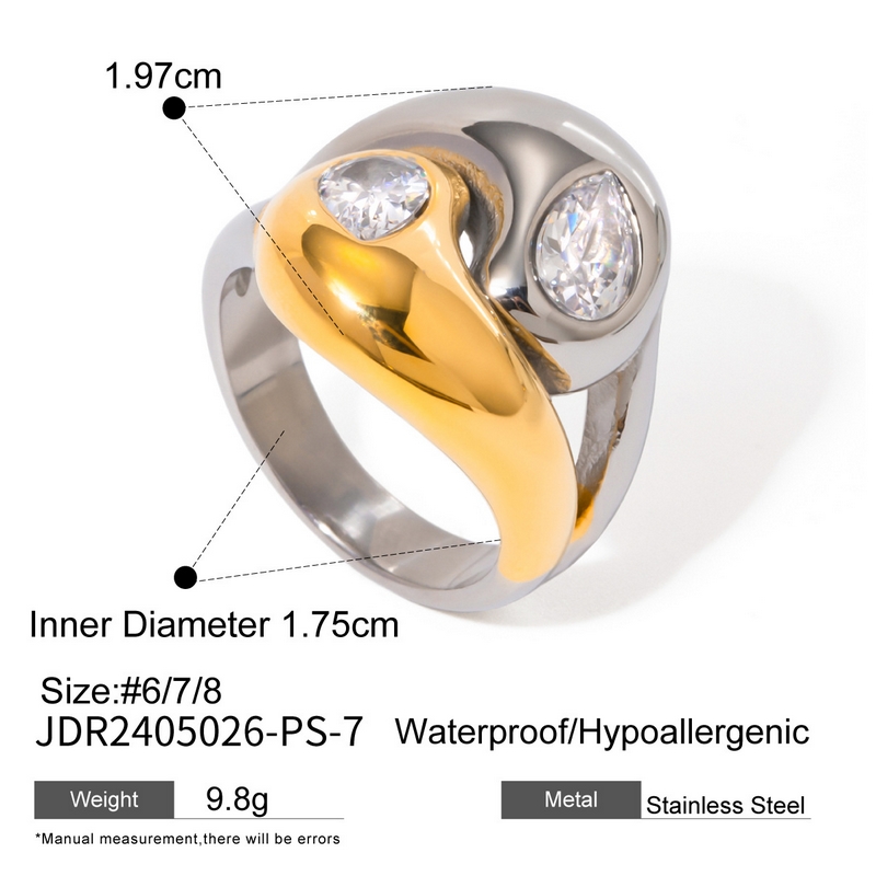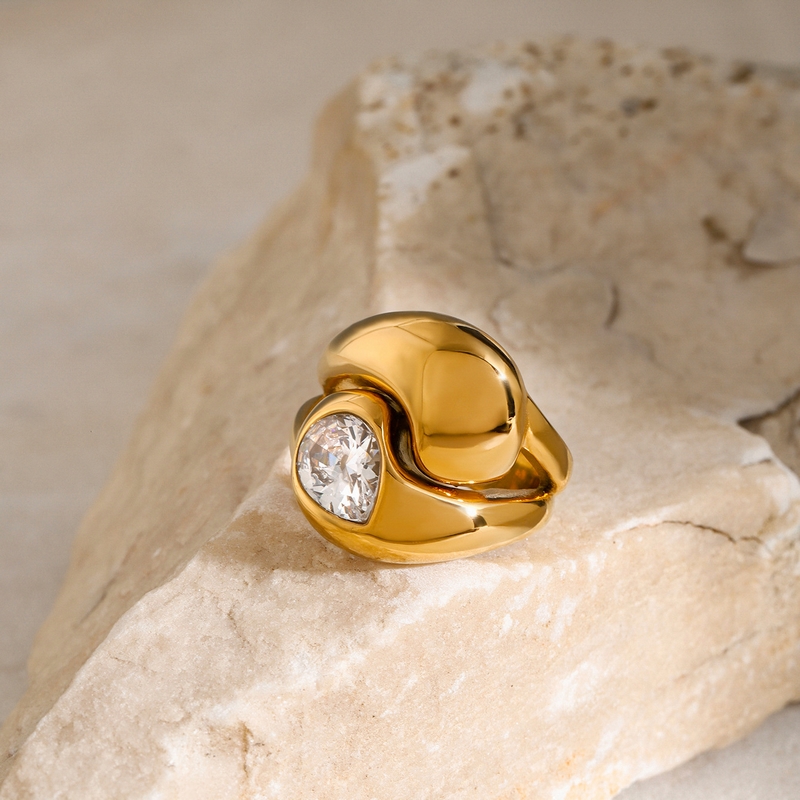 Home Stainless Steel Jewelry Fashion INS Style 18K Gold Stainless Steel Glossy Interlocking Teardrop with Zirconia Ring